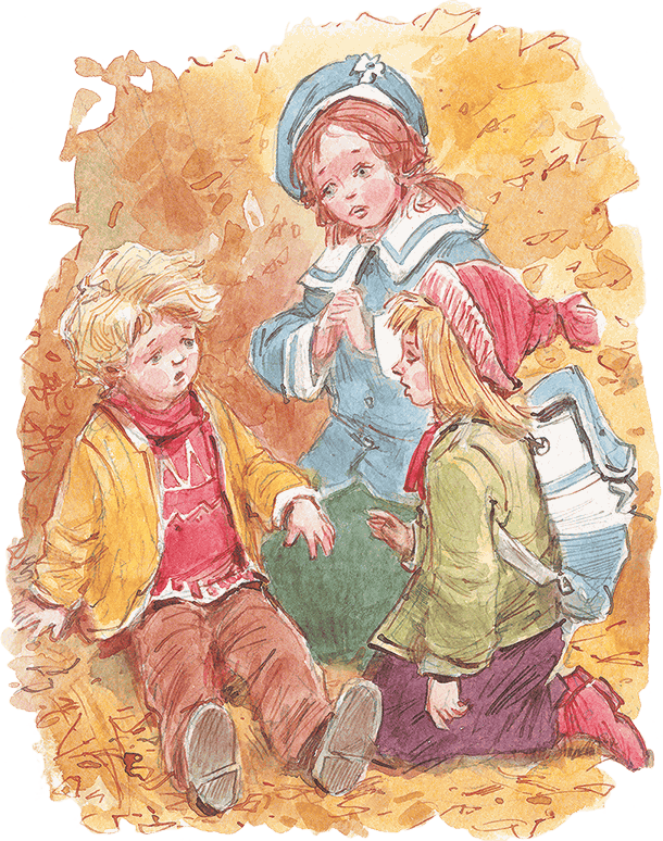– Мы теперь школьницы, – подхватила вторая. – А ты не пошёл учиться? Ну да, ты же ещё маленький. Нам столько уроков задают! Сейчас мы тоже торопимся, уроки начинаются через час, а мы хотим ещё поиграть на школьном дворе. Это так здорово!