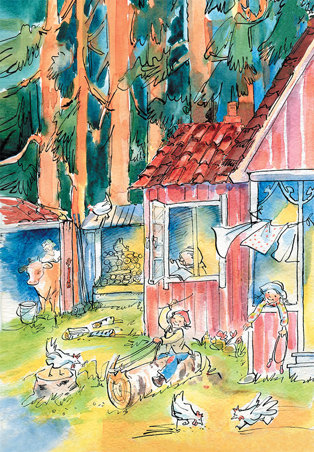 Самоварная Труба подняла на него глаза. Она поняла всё, что он сказал, – вид у папы был огорчённый и серьёзный, – и она спрятала нос Хенрику под мышку. Бабушка помахала курам, но они, по-видимому, нисколько не огорчились, что она от них уезжает, и бабушке это не понравилось – ведь она о них так заботилась.