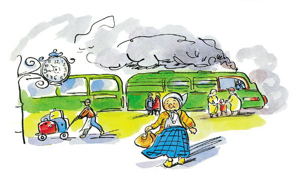 Папа, мама и восемь детей встали на цыпочки и заглядывали в окна вагонов, но бабушки нигде не было.