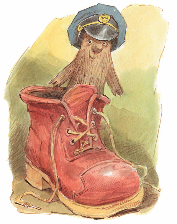 В Бесбю с Малышом едут ещё трое приятелей. Во-первых, его лучший друг Щепкин – обломок соснового корня, но на вид вылитый человечек. Это на его прадедушку Малыш сейчас забрался. Щепкин везёт с собой жену Корнеевну. Щепкин не любит слово «жена» и всегда кривится, когда Малыш её так называет, а сам величает Корнеевну только супругой: моя супруга то, моя супруга сё… Правда, сейчас она сама и их сынок, крошка Корешок, надёжно упакованы и лежат сверху в одной из маминых корзин, но верного друга Щепкина Малыш взял с собой попрощаться с прадедушкой.