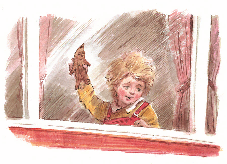 Начал он с Кнопки из домика на горе. Сперва Кнопка ужасно расстроилась, но потом сказала, что выйдет за Малыша замуж, когда вырастет, и перестала огорчаться так сильно. Старик столяр, его закадычный друг, вырезал ему в подарок лошадку, на которой верхом сидит принцесса с распущенными волосами. Тётушка Забота и Лилле-Бьёрн плакали самыми настоящими слезами из-за того, что Малыш уезжает. Вернее, переезжает, причём не один. Они уезжают все вместе: мама, папа, старший брат Филипп и он сам. Его, кстати, зовут Андреас, но для всех он просто Малыш.