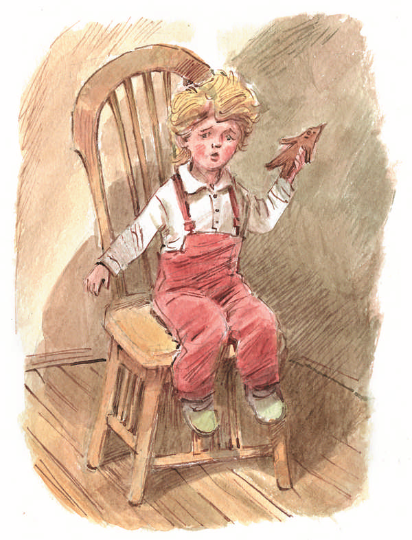Дойдя до машины, папа остановился и долго смотрел на дом. «Как будто прощается с ним и желает ему всего хорошего», – подумал Малыш. Но вот папа сел в кабину, и огромный фургон осторожно выехал со двора. Малыш вернулся в дом. В нём было пустынно, гулко и непривычно. Посреди гостиной Филипп, лёжа на животе, скоблил пол.