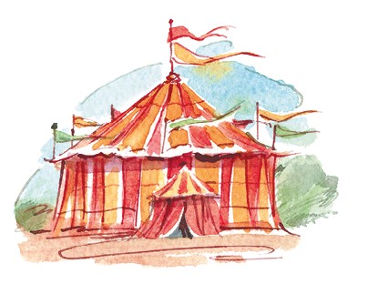 Цирковой шатёр видно было издалека, он был расцвечен яркими красными огнями. Уле-Александр ещё ни разу в цирке не бывал, ему так не терпелось попасть внутрь, что у него уже щёки пылали. Но на подходе к цирку стояли вагончики, и на них были нарисованы разные звери. Уле-Александр никак не мог уйти, не рассмотрев всё подробно, но мама с папой тянули его за собой, скорее-скорее в шатёр.