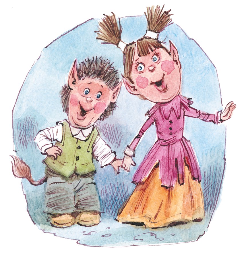 – Привет, привет, привет, привет, привет, – пропели пять тонких голосков. Кто это тут такие? Ого – пять тролльчат машут ребятам хвостами и лапами.