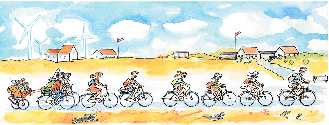 Так они и ехали, уткнувшись носами в землю. Бабушка, Мортен и Мина, которым не надо было править велосипедами, закрыли глаза, чтобы угодить папе.