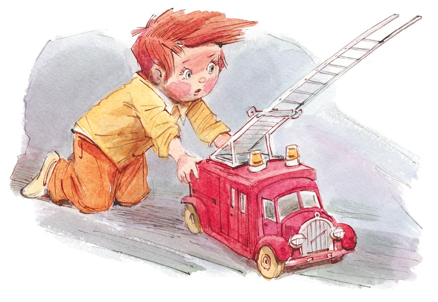Тут на кухне что-то зафырчало, засипело и стало плеваться. Это выкипал кофейник. Уле-Александр бросился на кухню. Он схватил кофейник, забыв, что тот раскалился на огне, но тут же выпустил его. В результате Уле-Александр обжёг пальцы, а кофейник продолжал фырчать и плеваться коричневой жижей. Но Уле-Александр не растерялся и притащил из комнаты свою пожарную машину с выдвижной лестницей. Он выдвинул лестницу и поехал прямо на кофейник, тот вздрогнул – и сдвинулся с места! Пришлось быстро убирать машину, чтобы кофейник не опрокинулся.