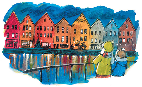 – Это только кажется, потому что сейчас темно, – сказал папа. – Здания в Бергене стоят на возвышенности. Я думаю, что, когда Сократик чуть подрастёт, мы вернёмся сюда и остановимся на несколько дней. Здесь есть на что посмотреть.