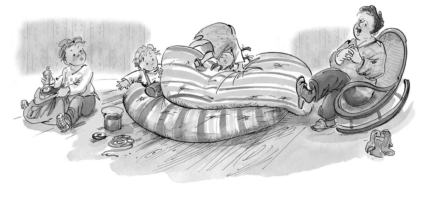 Не прошло и секунды, как дети забрались каждый на свою кровать, и мама до конца дня никакими силами не могла извлечь их оттуда.