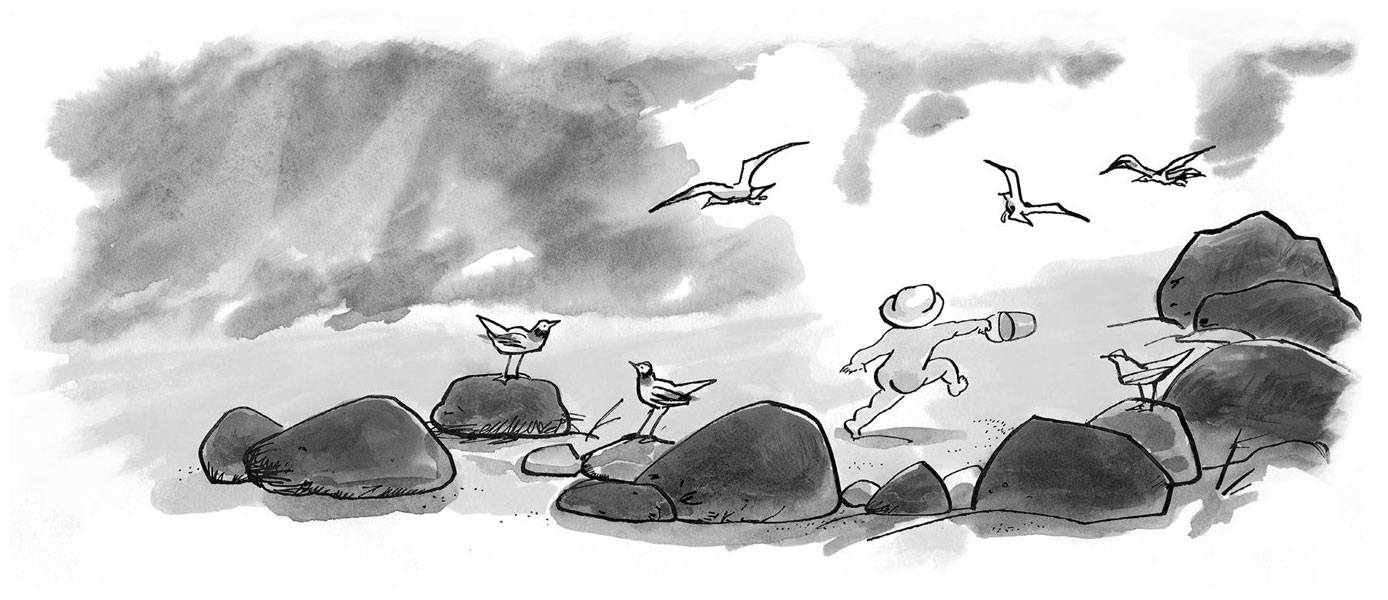 – За этим человеком нам придётся всё время следить, – сказала мама. – Стоит отвернуться, как он убежит к морю.