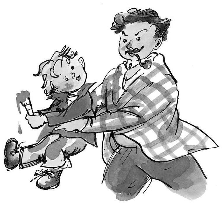 Папа, осторожно ступая между красными дорожками, добрался до Мортена и поднял его на руки, но Мортен рассердился, дёрнулся и мазнул папу кисточкой прямо по лицу, и нос у папы тут же стал красным. Наконец папе удалось отобрать у Мортена кисть, и он вручил Мортена маме. А маме пришлось оттирать Мортена ацетоном, потому что он весь был в красной краске.
