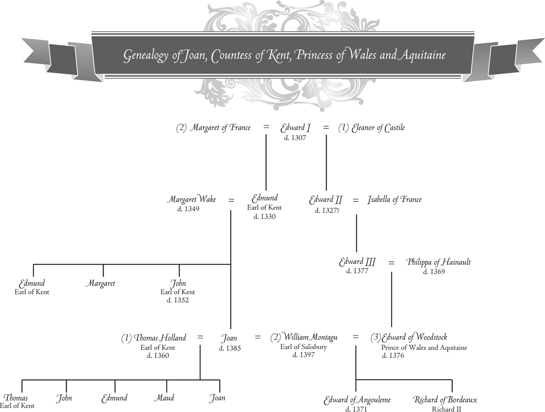 For George, as ever, my love and my thanks for his cheerful tolerance of all things medieval. His appreciation of Joan of Kent’s wayward lifestyle was often more balanced than mine. The Fair Maid owes him a debt of gratitude too.