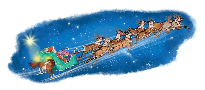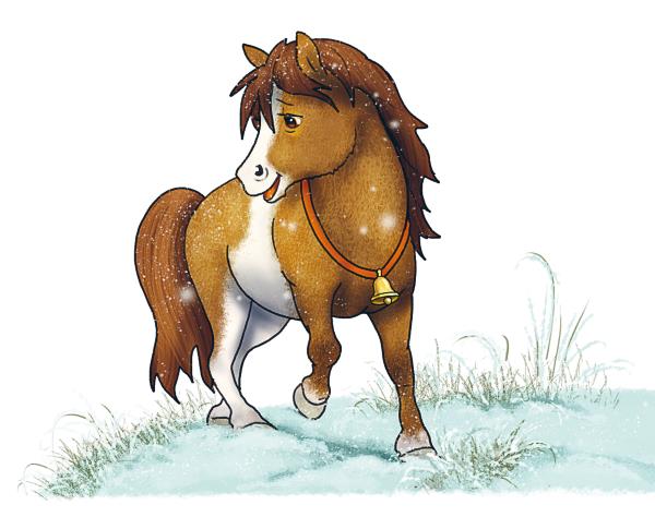 Наоборот, понадобилось некоторое время, чтобы снова найти своё место среди оленей. И он нашёл его, став новогодним пони. Он занял девятое, но самое важное место в упряжке. Расположившись позади всех за санями, он поддерживал их равновесие. Колокольчик всегда был готов помочь, если летевшие впереди олени уставали, скучали по дому или больше не могли продолжать полёт.
