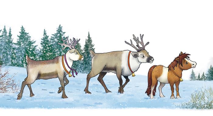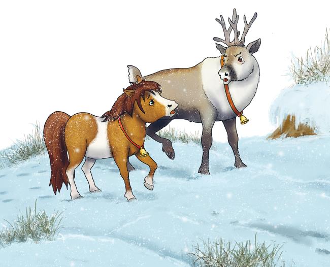 Колокольчик тоже не удержался и рассмеялся. Правда, в прошлом году ему было грустно и хотелось расплакаться. Узнав, что он совсем не северный олень, а пони, которого Оле и его жена Элин нашли ещё новорождённым и взяли в своё стадо, Колокольчик наконец понял, почему у него нет таланта к полётам. Но легче ему от этого не стало.