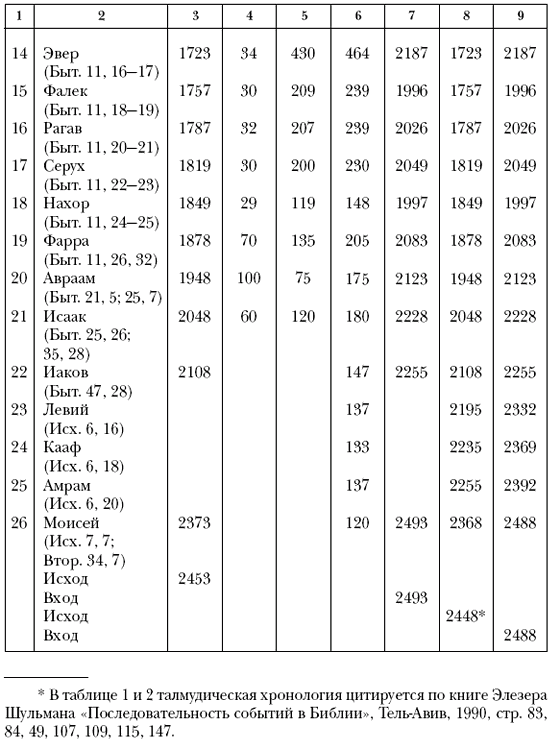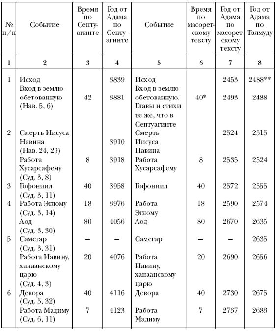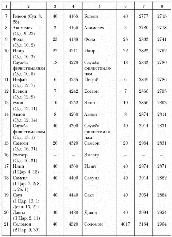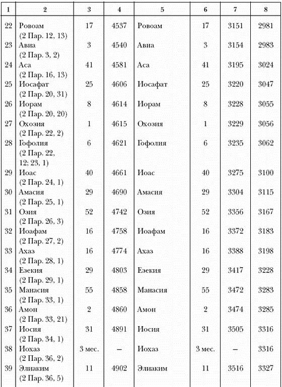 Продолжая параллельное чтение двух Библий, книг Иисуса Навина, Судей, Царств, Паралипоменона, можно продолжить летопись человечества и историю еврейского народа до времени вавилонского царя Навуходоносора и иудейского царя Седекии – до начала вавилонского плена, который, по общепризнанной (в том числе и иудаистами-рав-винами) датировке, произошел в 586 году до нашей эры9 (см. табл. 2).