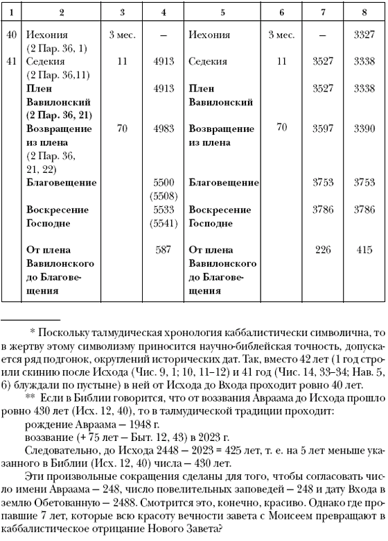 Чрезвычайно важен проведенный автором сравнительный анализ ветхозаветной хронологии по текстам Септуагинты, ма-соретским текстам и текстам Талмуда. Искусственное сокращение исторической хронологии (по «идеологическим» соображениям) в масоретских текстах показано автором работы с исчерпывающей ясностью.