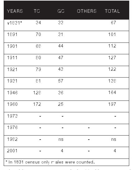 Resim: Arpalık Köyünün Göç Hareketleri Tarihlere Göre Veriliyor. TC (Turkihs Cypriot) Kıbrıslı Türleri, GC (Greek Cypriot) Rumları Anlatmaktadır. 1831 Tarihli Nüfus Sayımında Yalnızca Erkek Nüfus Gösterilmektedir6.