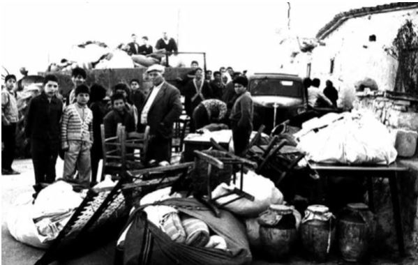 Resim: Arpalık (1964/Şubat) Saldırı Sonrası Akıncılara Taşınan Kıbrıslı Türkler.