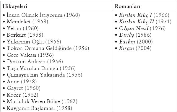 Tölögön Kasımbekov’un hikâye ve romanları şu şekilde tablolaştırılabilinir;