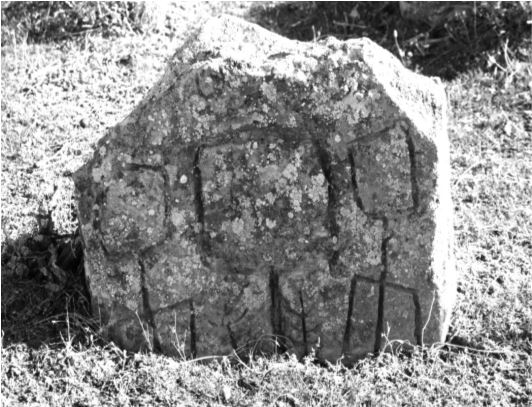 Foto 3: Üzerinde “Gobu” damgayı barındıran bir mezar taşının görüntüsü (Büyük Taş Bölgesi / Gobustan / Azerbaycan; Alyılmaz, 2016: 612.
