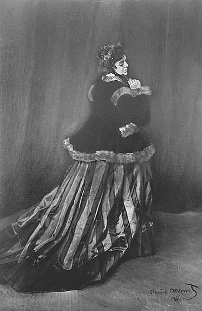В последнюю минуту Моне заменил этим портретом, написанным всего за четыре дня, монументальный «Завтрак», который он готовил для Салона. Послушавшись советов Курбе, Моне внес кое-какие поправки в картину, но после этого она перестала ему нравиться, и с досады он раздумал посылать ее в Салон. К тому же ее пришлось оставить в залог у хозяина дома, которому Моне не мог заплатить долг за квартиру. «Камилла, или портрет дамы в зеленом платье», был замечен в Салоне – его очень хвалили. Вне всяких сомнений, Моне выдвигался на первое место в группе.