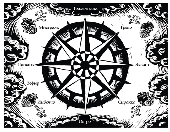 Юг. Остро, аустер, меццоджорно – мягкий южный ветер, приносящий дождь.