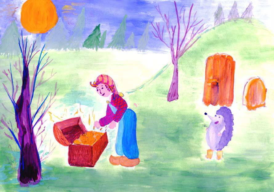 Дикобразик и золотой цветокВ далёком тропическом лесу жила семья дикобразов: мама-дикобразиха, папа-дикобраз и три маленьких дикобразика. И всё было бы у них хорошо, да вот только у самого старшего дикобразика всё время сильно болела голова. Родители очень переживали по этому поводу, а лесные врачи только печально разводили руками – никто не знал причины этой страшной болезни. Жизнь дикобразика трудно было назвать счастливой: он не мог играть с другими детьми, не мог веселиться под тенью тропических лиан, не мог вдоволь наесться фруктов – ему мешала неведомая болезнь. Но семья не теряла надежды, они продолжали искать способ лечения, и однажды привели его к мудрой старой черепахе.