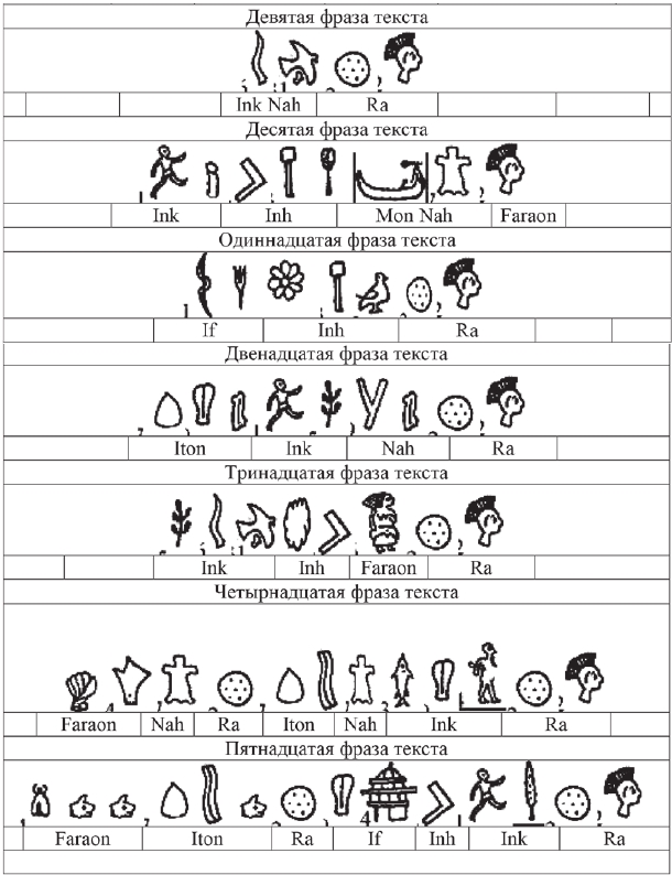 Переводы текстов появятся позже. Сначала займёмся фонетикой. Кстати, переводы текстов Фестского диска – это переводы египетских «Гимнов Атона», а переводы египетских «Гимнов Атона» широко представлены в литературе по египетской иероглифике, в том числе и в интернете. Так что любой желающий может легко ознакомиться с ними самостоятельно.