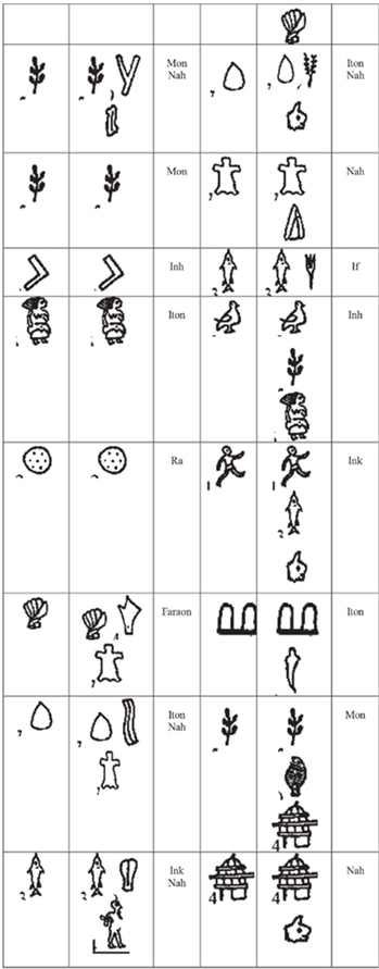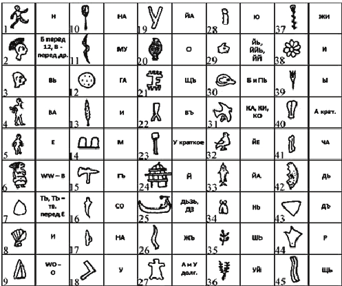 Дешифрованный фонетический алфавит иероглифов Фестского диска