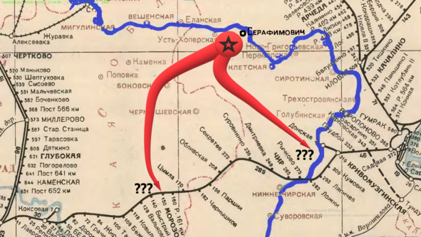 С одной стороны, расстояние от плацдарма у Серафимовича, что до Калача, что до Морозовской примерно одинаковый, а c другой стороны, Паулюсу спасать Калач намного проще, ведь поселок расположен намного ближе к его основной группировке.
