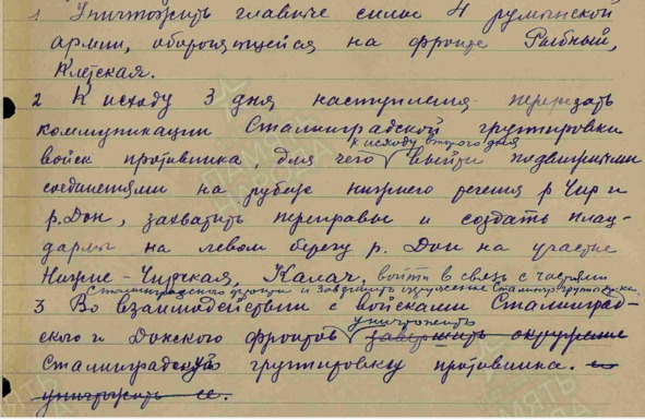 Эта карта, подписанная И. И. Войковым, отображала только начальный этап работы над планом разгрома противника в районе Сталинграда и на южном фланге советско-германского фронта[53]