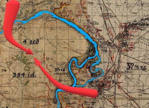 Момент для рывка был выбран удачно, так как атака на плацдарм совпала с масштабным наступлением Сталинградского фронта в Междуречье. Немецкий гарнизон 384-й пд оказался один на один с нашими гвардейцами без шанса на оперативную помощь с "большой земли".