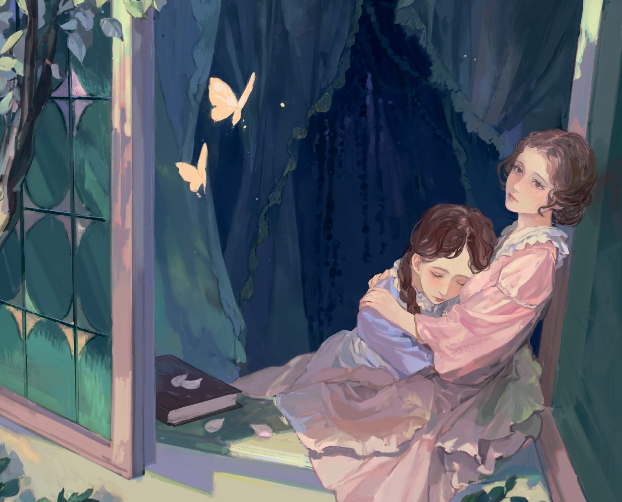 Комната, которая до сих пор называется детскою. Одна из дверей ведет в комнату Ани. Рассвет, скоро взойдет солнце. Уже май, цветут вишневые деревья, но в саду холодно, утренник. Окна в комнате закрыты.