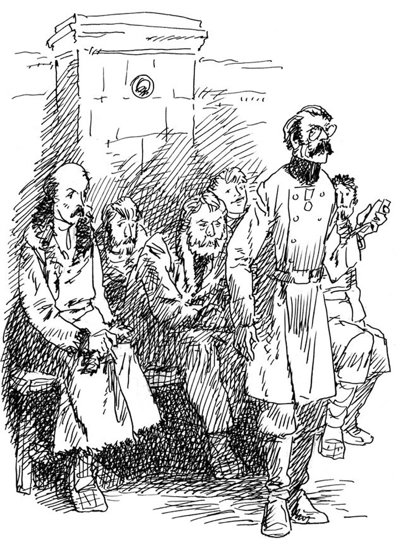 Потом почесался, подумал и прибавил: «Константину Макарычу». Довольный тем, что ему не помешали писать, он надел шапку и, не набрасывая на себя шубейки, прямо в рубахе выбежал на улицу…