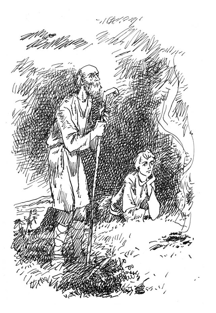 Когда собаки успокоились, старик принял прежнюю позу и сказал покойным голосом: