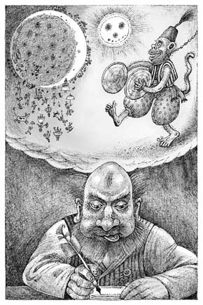 Иногда вынимал из стола свою записную книжку и, подняв лицо и блестя стеклами пенсне, мотал ею в воздухе: