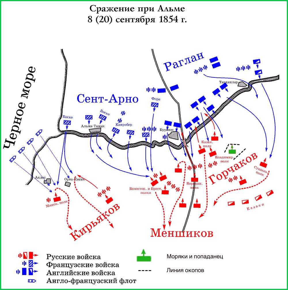 Центральная часть фронта выглядела гораздо опаснее для обороны. Широкая балка[4], по которой и протянулась главная дорога к Евпатории, выходила к деревне Бурлюк. Через Альму был перекинут мост, рядом с ним ревом и пеной выделялись броды. Не так много пространства для маневров, но оно было. А еще сады… Да, растущие вокруг деревень фруктовые деревья распространяли во все стороны чарующие ароматы, но еще они могли быть и укрытием.