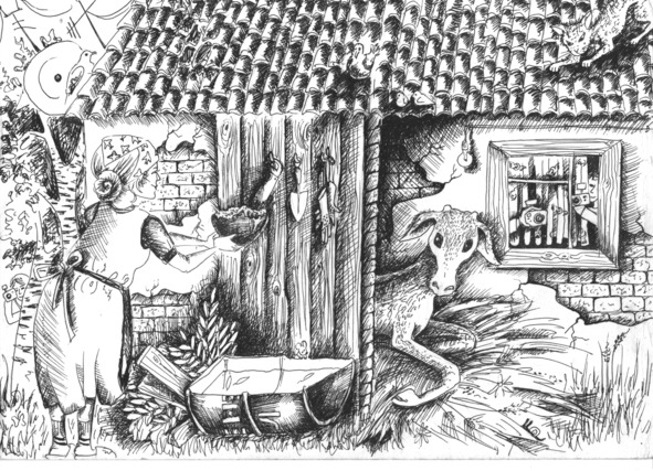 Жалко стало пожарным лосиху с лосёнком, и решили они ненадолго погасить несколько деревьев, чтобы сделать для лосей проход в стене огня. Большая и сильная лосиха прыгнула и проскочила огонь, а лосёнок не смог. Так и остался метаться по всё сужающейся полянке. Он мычал и звал свою маму, но она уже не могла вернуться.