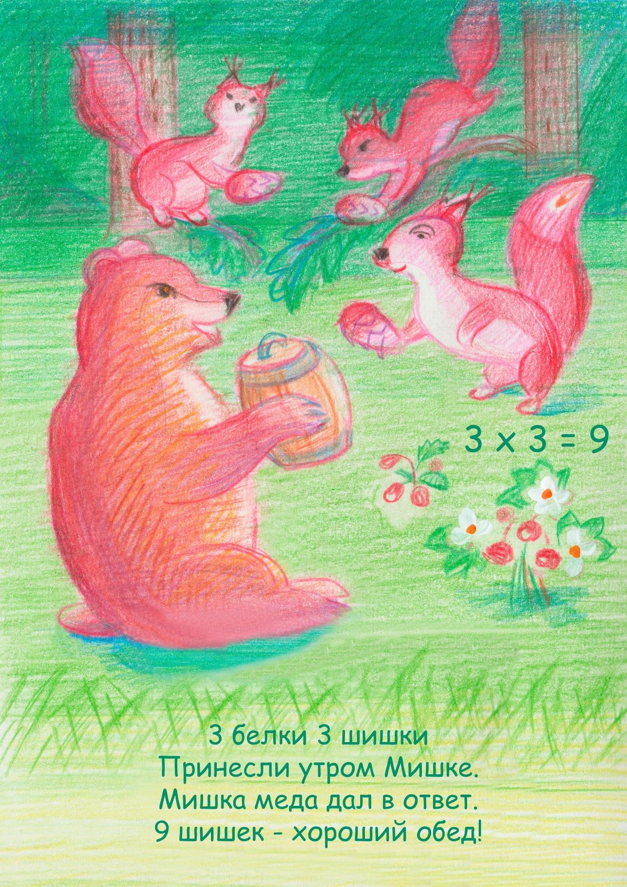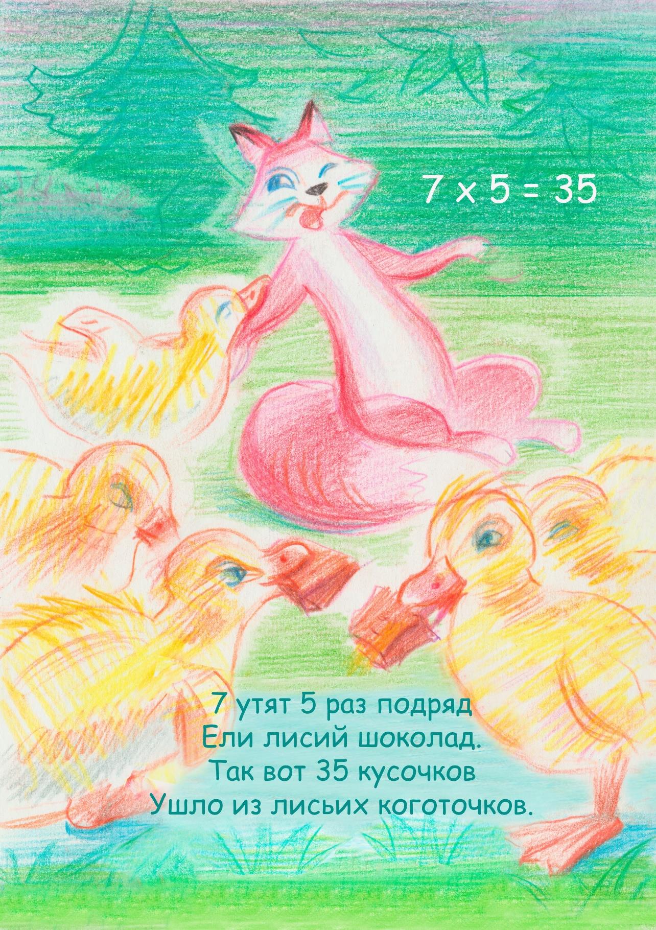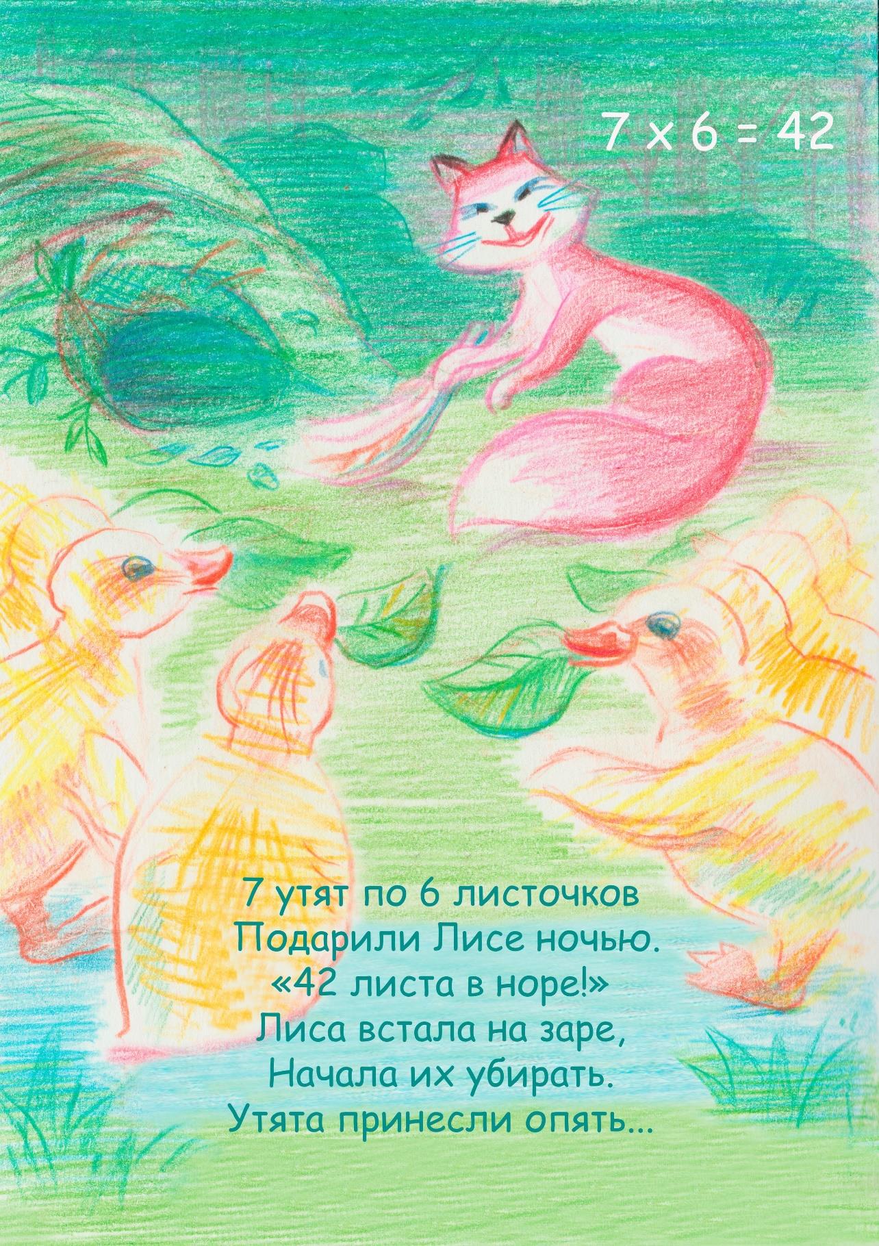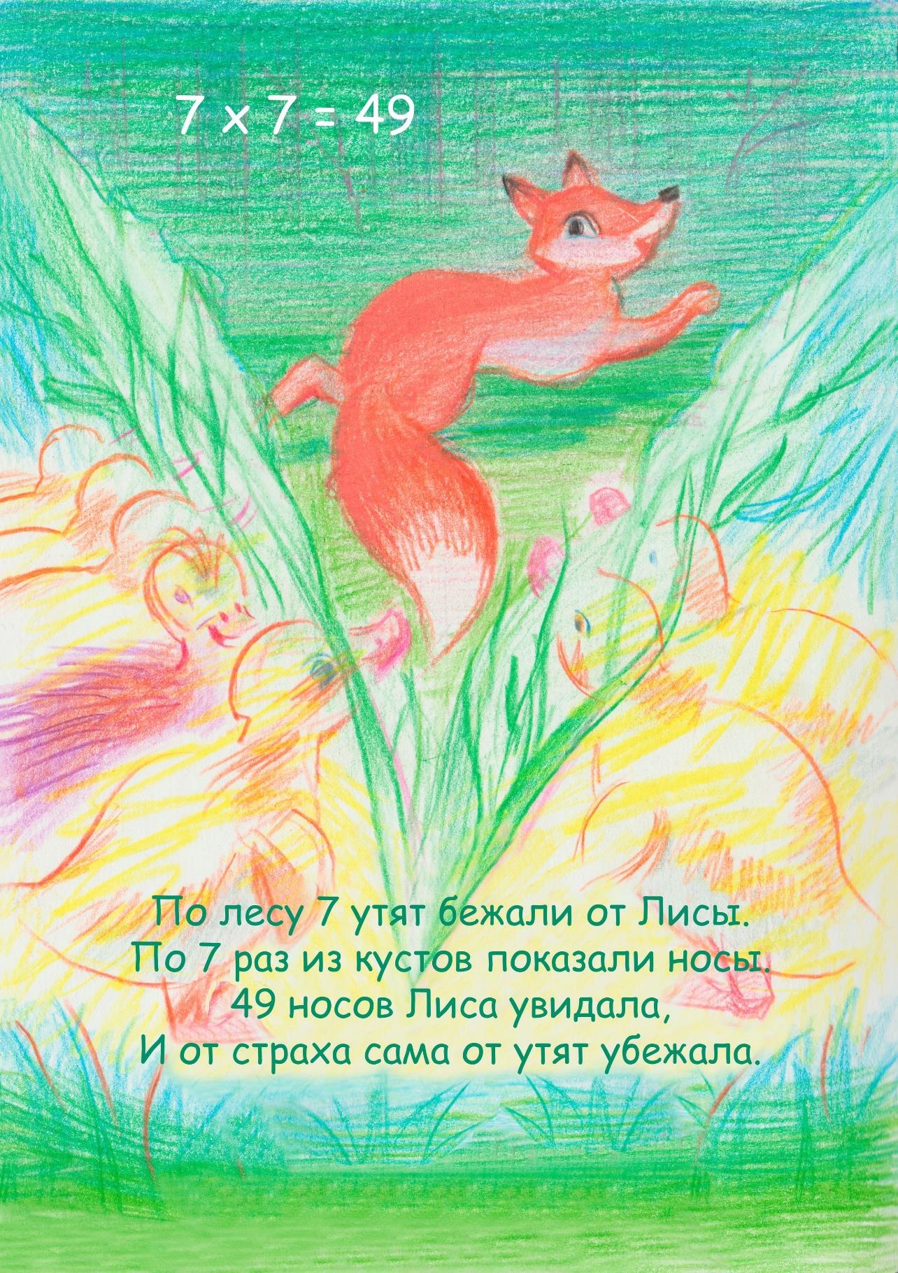 -Ух ты! – удивился Ежик. – Тогда надо бы книжку собрать. Смотри, я эти страницы уже по порядку разложил: вот здесь у тебя 9х9, а я следом 9х8 положил, а потом 9х7. Первая цифра такая же, а вторая другая- каждый раз меньше. Тогда по порядку будет. Ну что, идем за остальными листочками?