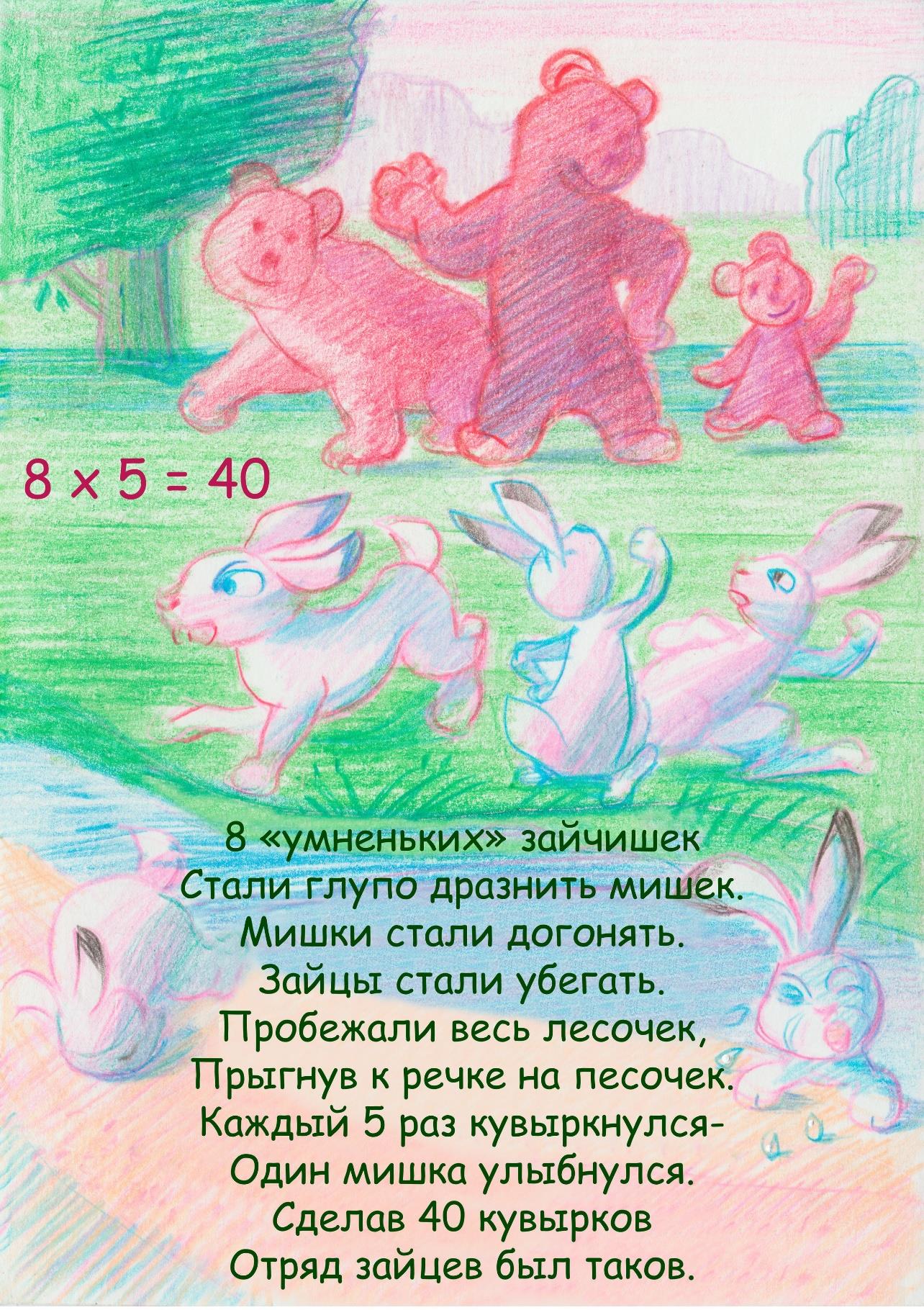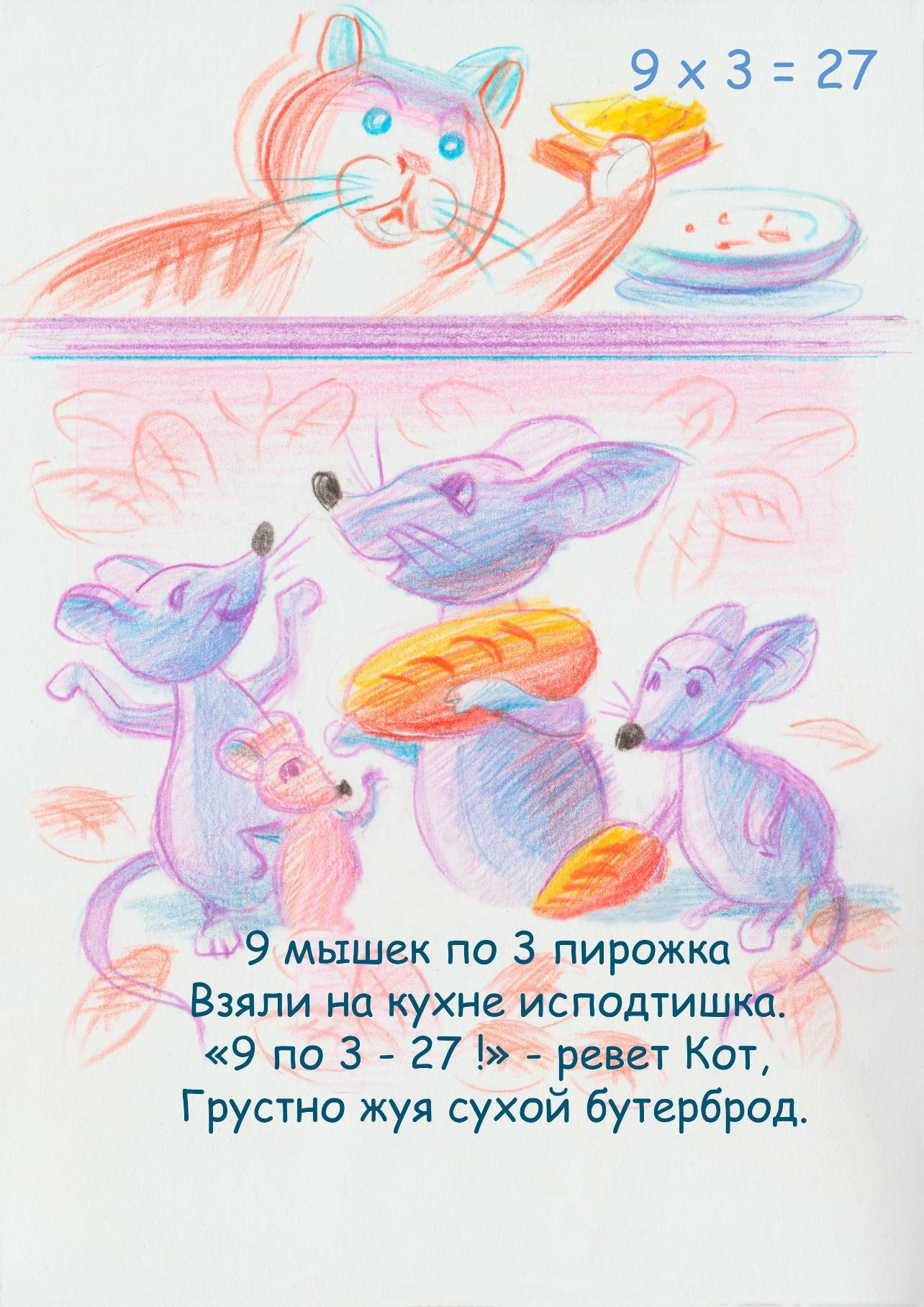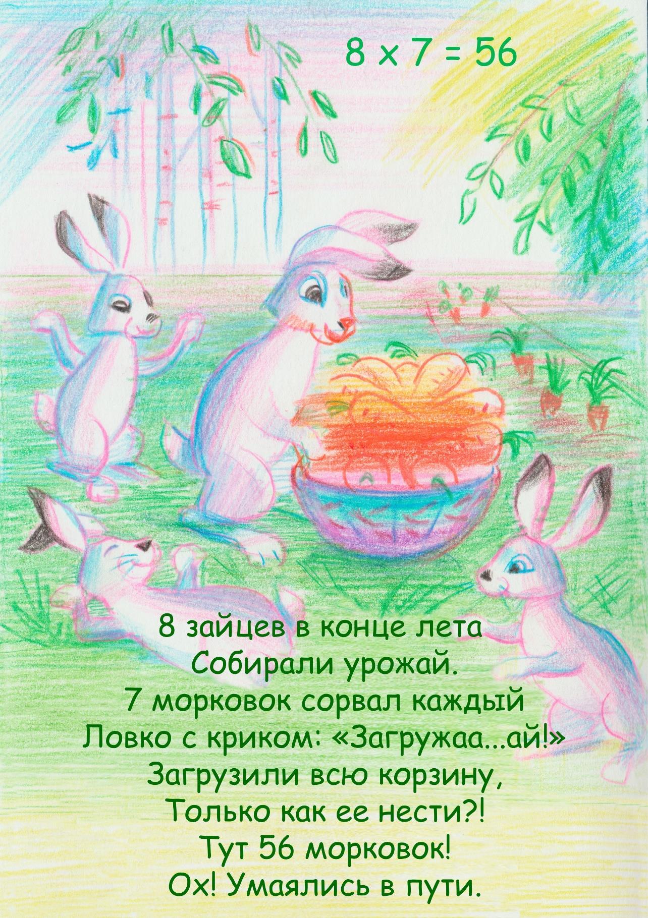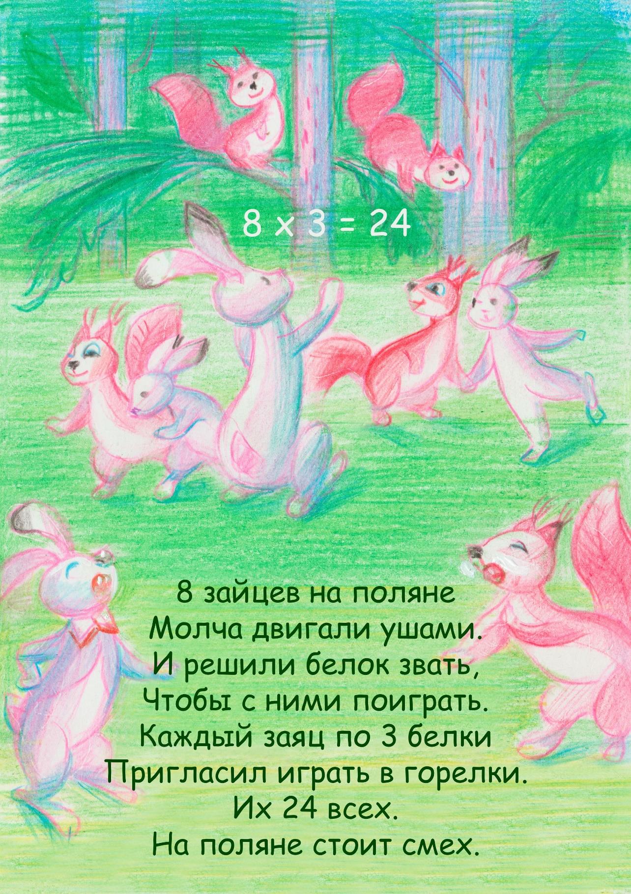 -Ух ты! – удивился Ежик. – Тогда надо бы книжку собрать. Смотри, я эти страницы уже по порядку разложил: вот здесь у тебя 9х9, а я следом 9х8 положил, а потом 9х7. Первая цифра такая же, а вторая другая- каждый раз меньше. Тогда по порядку будет. Ну что, идем за остальными листочками?