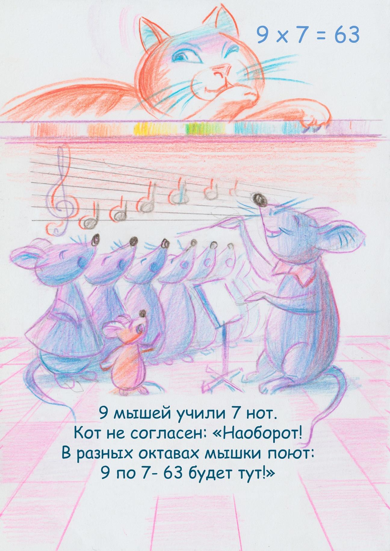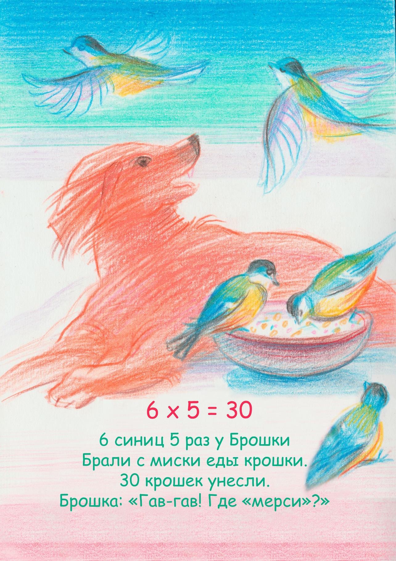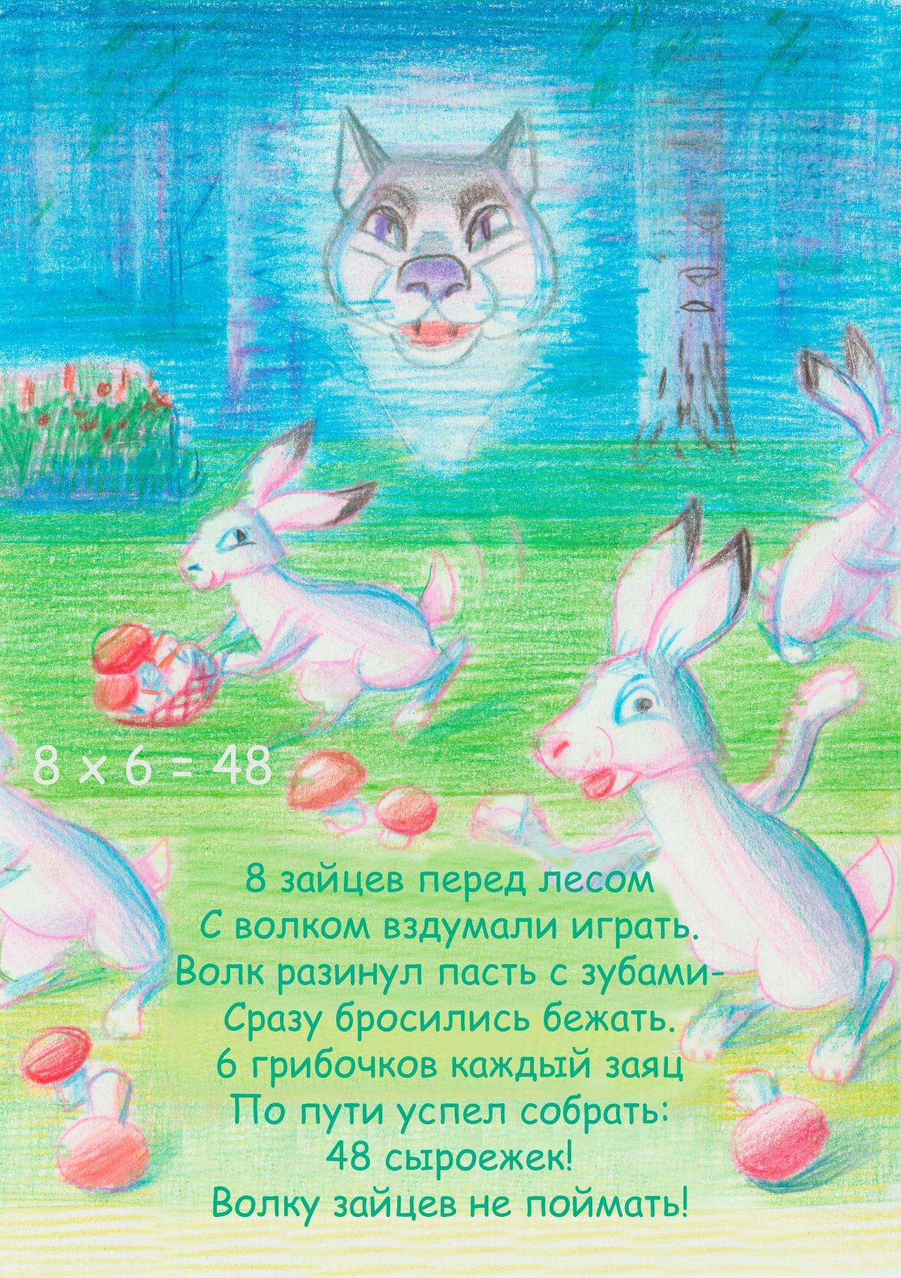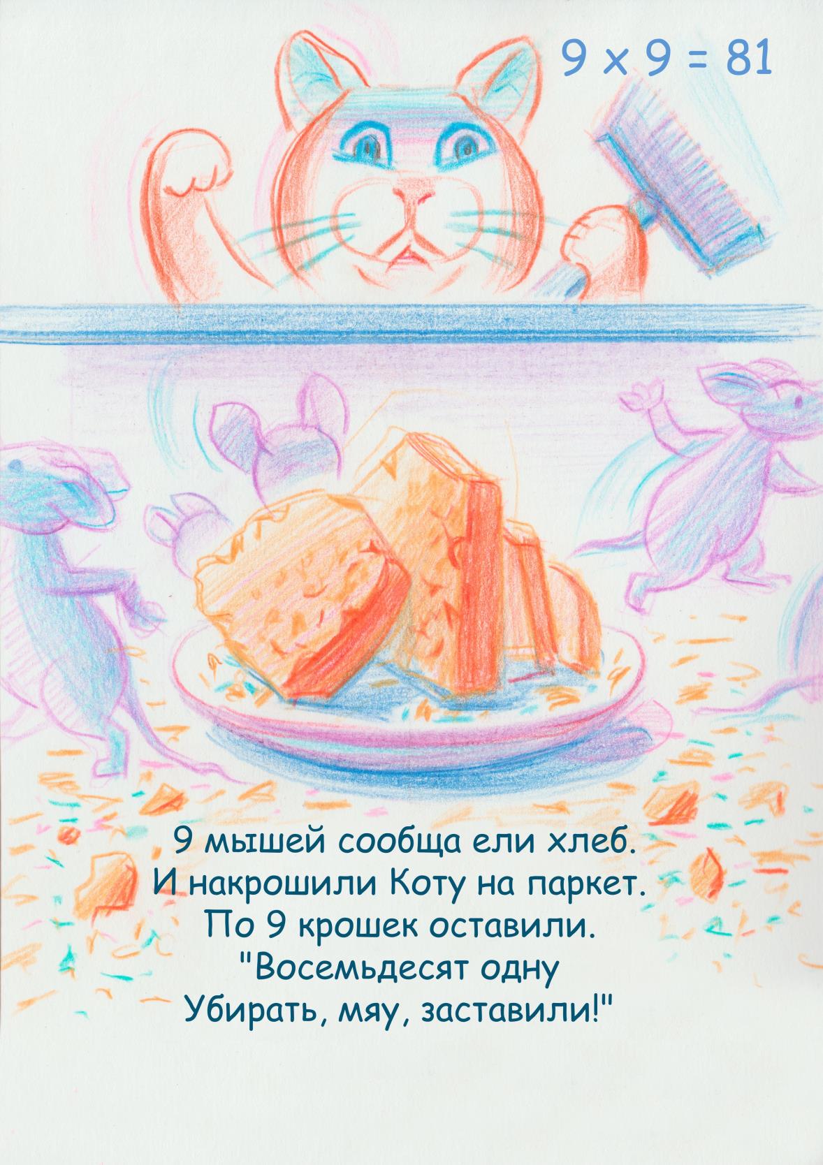 -Ух ты! – удивился Ежик. – Тогда надо бы книжку собрать. Смотри, я эти страницы уже по порядку разложил: вот здесь у тебя 9х9, а я следом 9х8 положил, а потом 9х7. Первая цифра такая же, а вторая другая- каждый раз меньше. Тогда по порядку будет. Ну что, идем за остальными листочками?