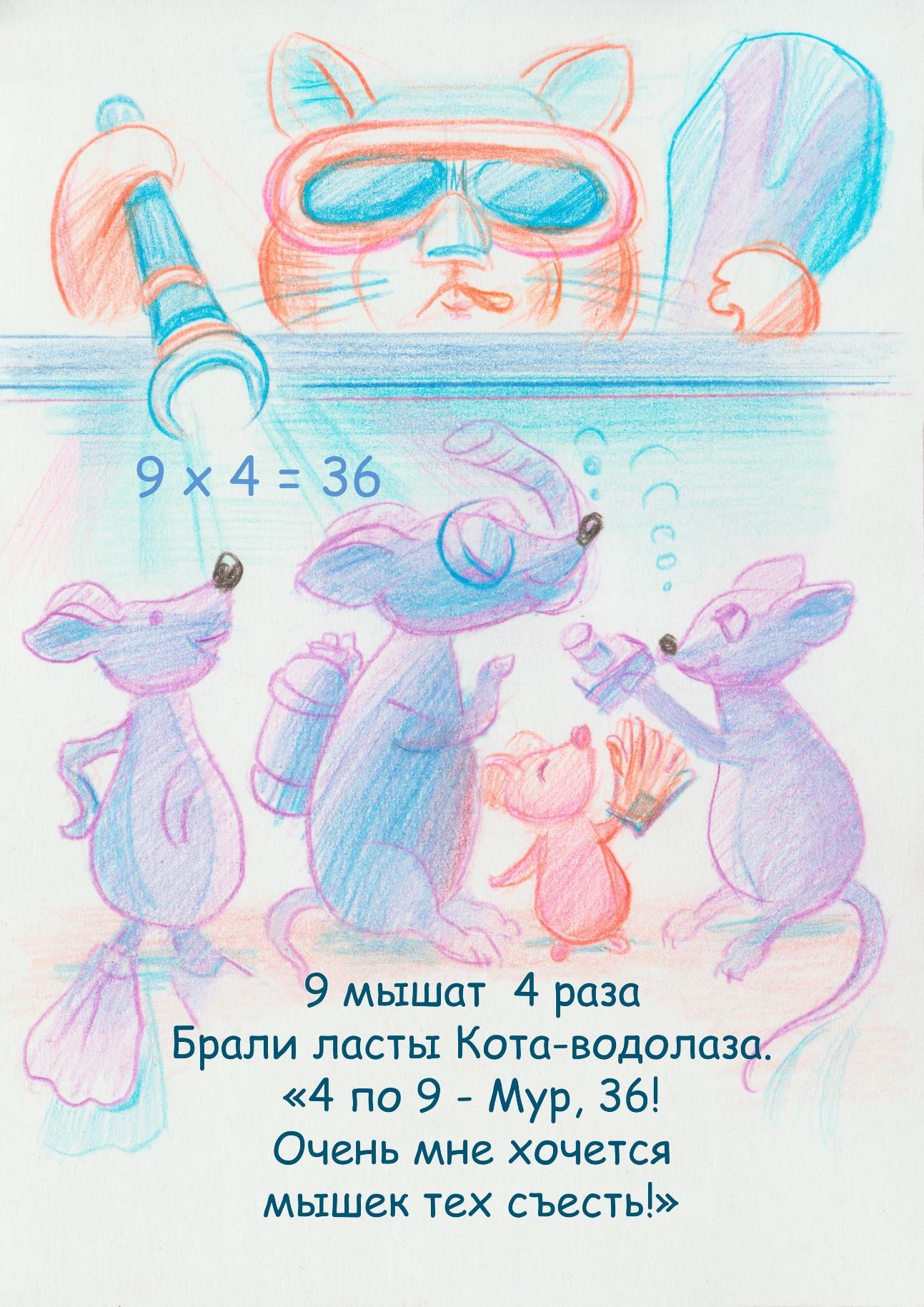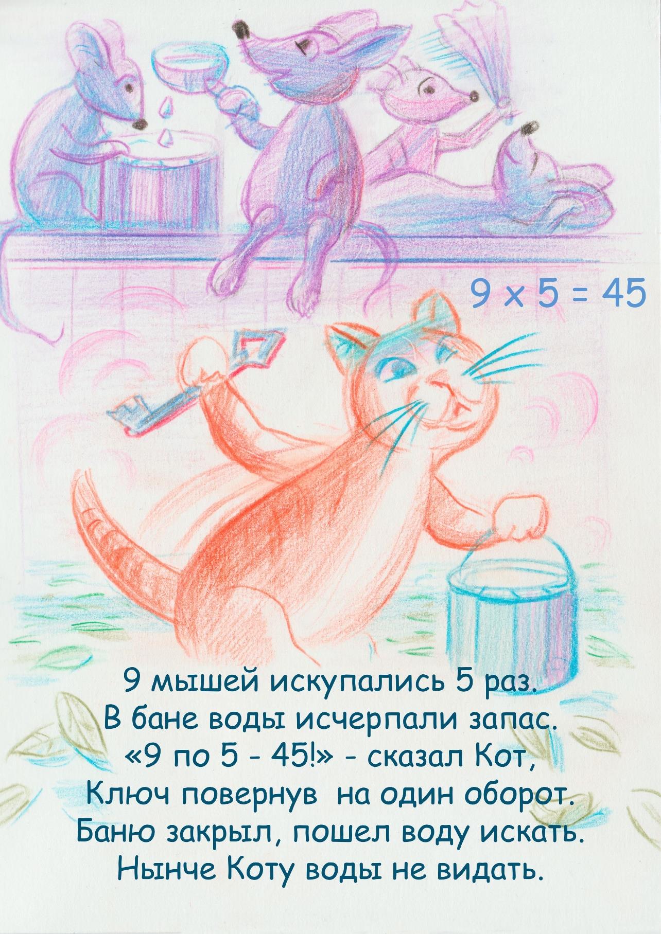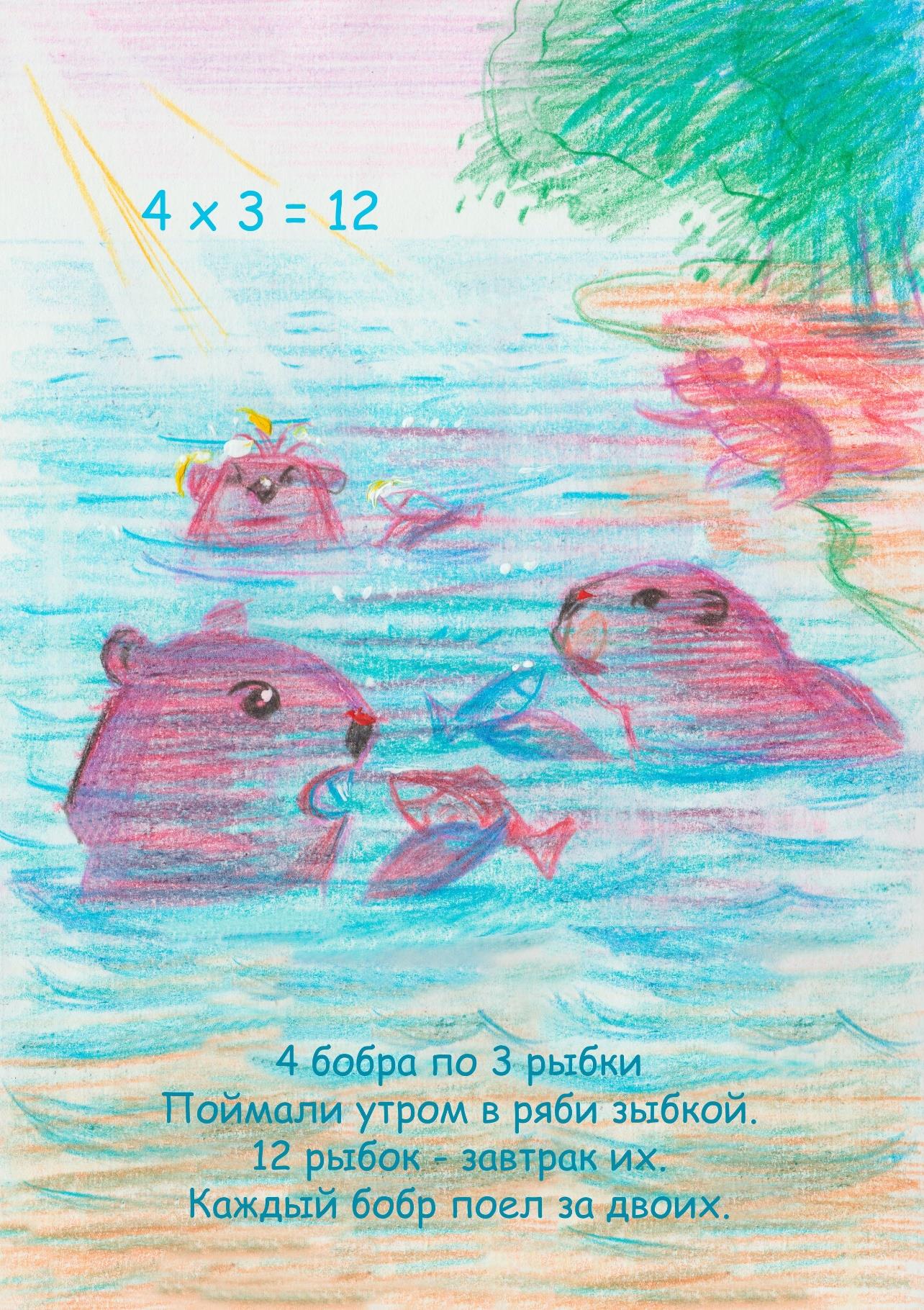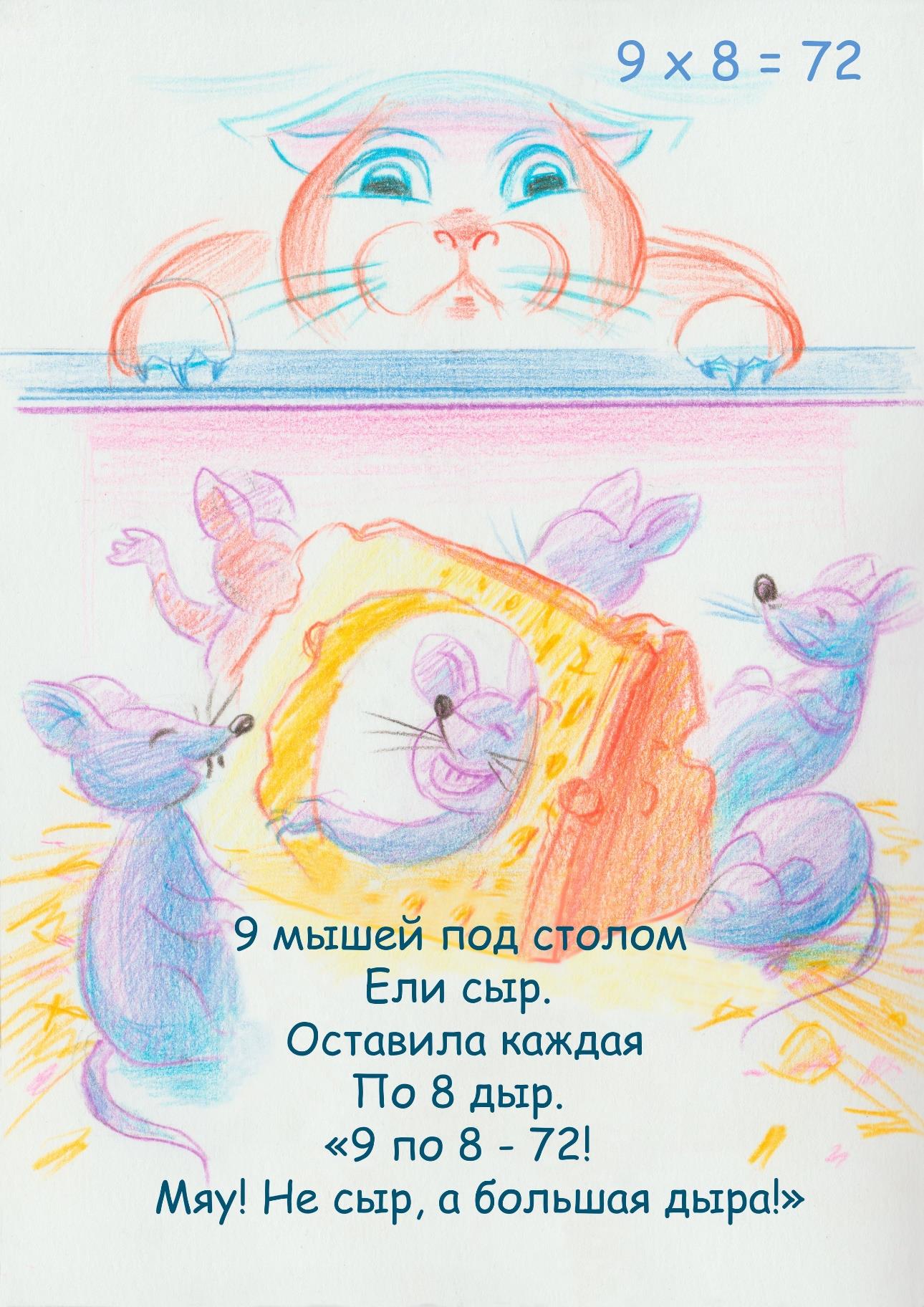 -Ух ты! – удивился Ежик. – Тогда надо бы книжку собрать. Смотри, я эти страницы уже по порядку разложил: вот здесь у тебя 9х9, а я следом 9х8 положил, а потом 9х7. Первая цифра такая же, а вторая другая- каждый раз меньше. Тогда по порядку будет. Ну что, идем за остальными листочками?