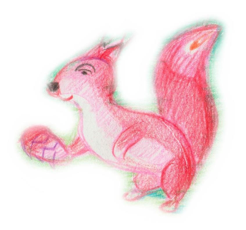 По дороге Заяц развеселился и заигрался с белками. А книгу оставил под деревом. Одна из белок захотела посмотреть книгу Медведя. Увидел Заяц книгу в лапках Белки и вспомнил про школу. Понял он, что опаздывает. Схватил книгу, махнул лапой белкам и побежал короткой дорогой.