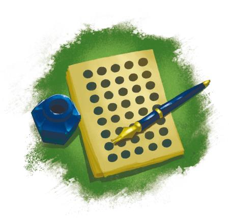 Человечек бросил беглый взгляд на шею Клоса и ловким движением оторвал от рулона лист необходимой длины. После чего подвинул листок к мальчику вместе с чернильницей и пером, на котором вместо букв рядами тянулись обычные чернильные кружочки, даже не совсем ровные. Видимо, именно их Человечек так тщательно выводил во время разговора.