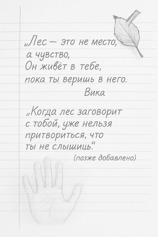 «Лес – это не место, а чувство.Он живёт в тебе, пока ты веришь в него».