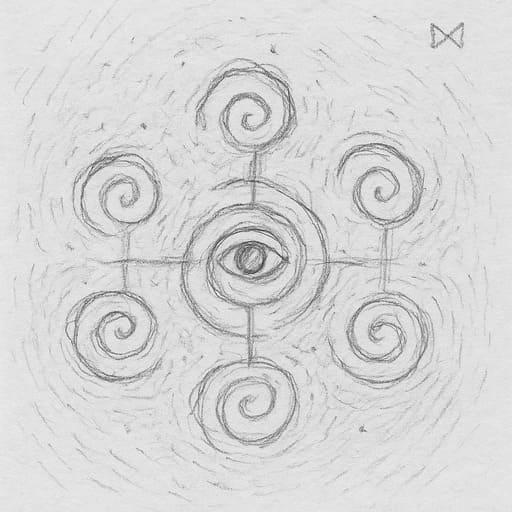 Её рисунок постепенно проявлялся на бумаге – упрощенные спиральные линии, соединяющиеся в центре темным "глазом". С каждой проведенной линией она ощущала странное чувство дежавю, словно эти узоры всегда существовали внутри неё, ожидая момента, чтобы проявиться.