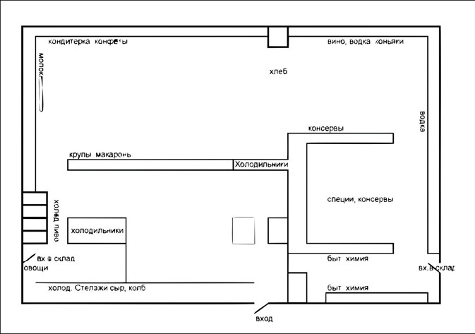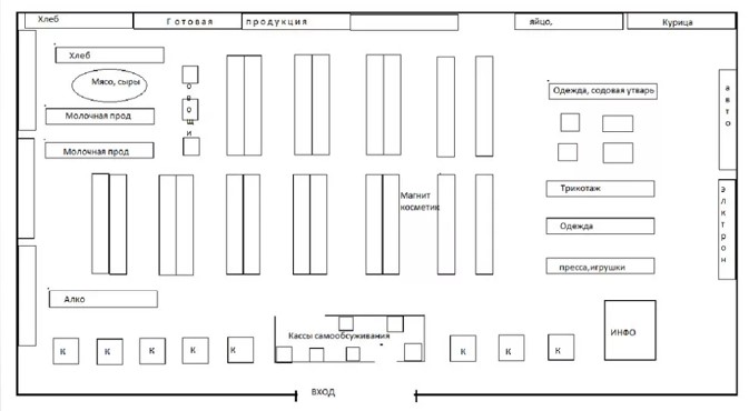 2. С открытой выкладкой. Покупатель имеет доступ к товару на этапе выбора, определившись, просит товар у продавца и расплачивается на кассе.