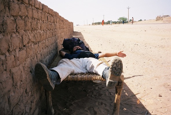 Место, куда они нас привели, оказалось постоялым двором в прямом смысле слова. Снаружи обнесённый глиняным забором, весь двор был заставлен деревянными кроватями, на которых уже спали, под звёздным суданским небом, многочисленные люди. Возник заспанный парень, вероятно хозяин заведения, который быстро приволок нам кусок мешковины и разложил её на песке: располагайтесь, мол. Пока мы сонно думали, что бы это значило, хозяин подошёл ещё раз и заметил, что ночлег в этом отеле стоит 2000 фунтов (менее $1). Мы, обрадованные тем, что сущность отеля прояснилась так быстро и мы не успели заснуть, подхватили рюкзаки и смылись, оставив хозяина в недоумённом ужасе.