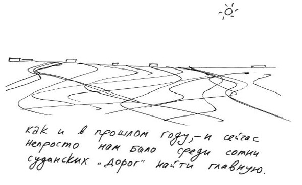 Мы взяли адрес, удивляясь, как здесь всё просто (причём это была не шутка, большинство суданцев имеют адреса именно такого типа, даже в Эль-Обейде – 300-тысячном городе), и вновь расстались с нашим попутчиком, который, вероятно, направлялся на толкучку высиживать платный транспорт. Мы же проехали шесть километров на попутном лендровере, затем долго торчали в пустыне и наконец застопили огромный грузовикообразный автобус, едущий в Хартум. Мы, как и в прошлый раз, решили не торопиться и попросились доехать бесплатно до следующего городка Делго. Водитель нам разрешил.