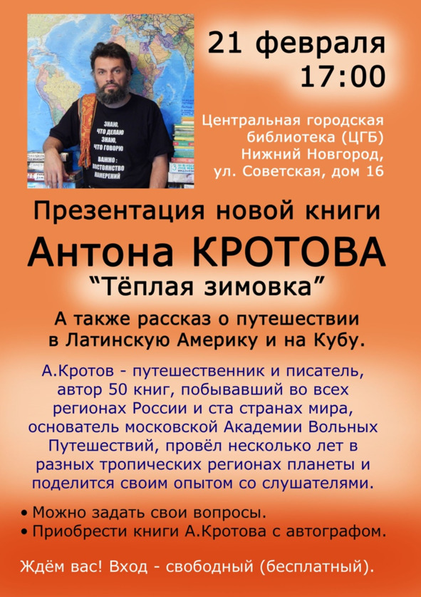 После хорошей расклейки объявлений, или же после активной рекламы в Интернете, люди, конечно же, приходили на мои лекции. Я уже писал, что иногда, помимо меня, на вечерах выступали другие путешественники – Григорий Кубатьян, Валерий Шанин, Владимир Динец, Сергей Браславский (Книжник), Илья Алигожин, кто-то ещё из друзей и знакомых тех лет. Но были случаи, когда лекцию вовсе не удавалось провести – почти все они относятся к началу 2000-х.