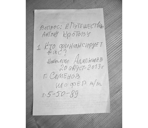 …На лекции АВП (Нижегородская область) присутствовало примерно полсотни человек, большая часть из которых оказались старушками, а остальные – женщинами средних лет. Было и около пяти мужчин. Один из них и задал мне (почему-то в письменном виде, вероятно, постеснялся озвучить)… в городе Семёнов